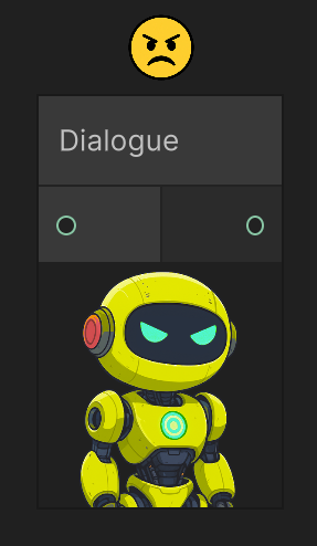 The Dialogue Node allows you to create dialogue for a specific character. You can also use it to set the emotion that the character is currently feeling.